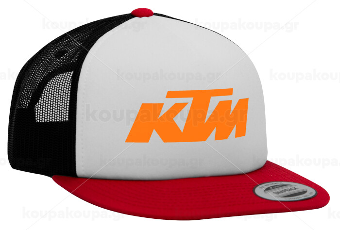 KTM, Adult Foam Flat Snapback with Mesh Red-White-Black (POLYESTER, ADULT, UNISEX, ONE SIZE)