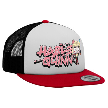 Harley Quinn (Χάρλεϊ Κουίν), Adult Foam Flat Snapback with Mesh Red-White-Black (POLYESTER, ADULT, UNISEX, ONE SIZE)