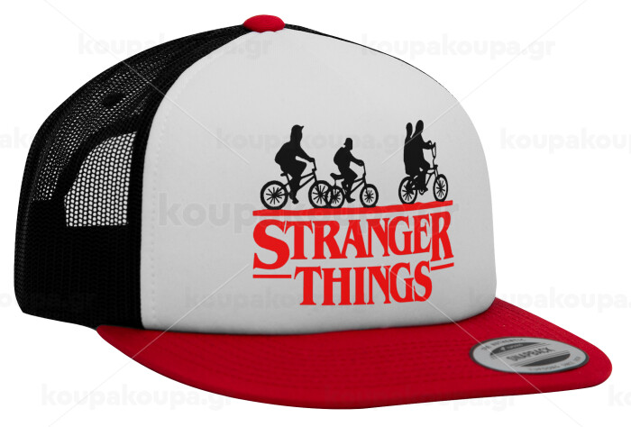 Stranger Things red, Adult Foam Flat Snapback with Mesh Red-White-Black (POLYESTER, ADULT, UNISEX, ONE SIZE)