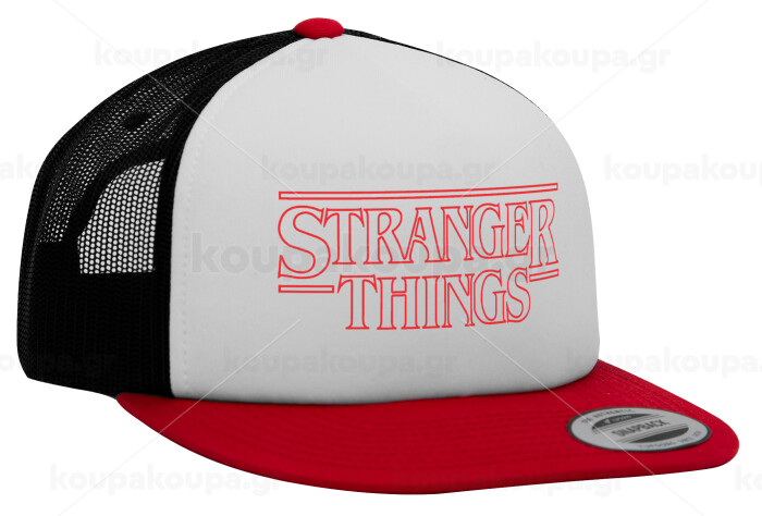 Stranger Things Logo, Adult Foam Flat Snapback with Mesh Red-White-Black (POLYESTER, ADULT, UNISEX, ONE SIZE)