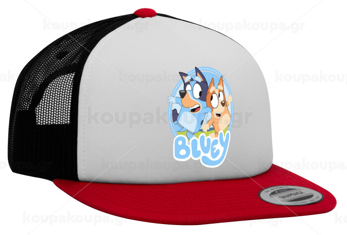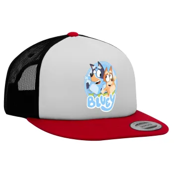 Μπλε, Adult Foam Flat Snapback with Mesh Red-White-Black (POLYESTER, ADULT, UNISEX, ONE SIZE)