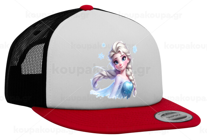 Elsa Princess, Adult Foam Flat Snapback with Mesh Red-White-Black (POLYESTER, ADULT, UNISEX, ONE SIZE)