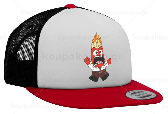 Inside Out Angry, Adult Foam Flat Snapback with Mesh Red-White-Black (POLYESTER, ADULT, UNISEX, ONE SIZE)
