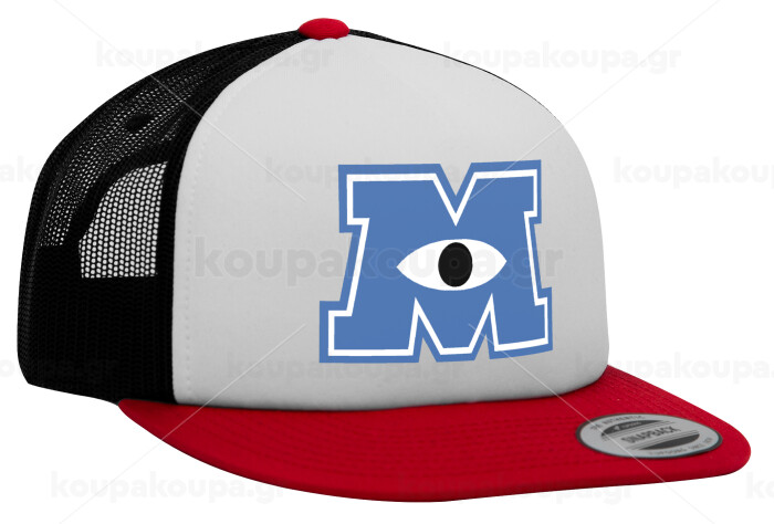 Monster inc, Adult Foam Flat Snapback with Mesh Red-White-Black (POLYESTER, ADULT, UNISEX, ONE SIZE)