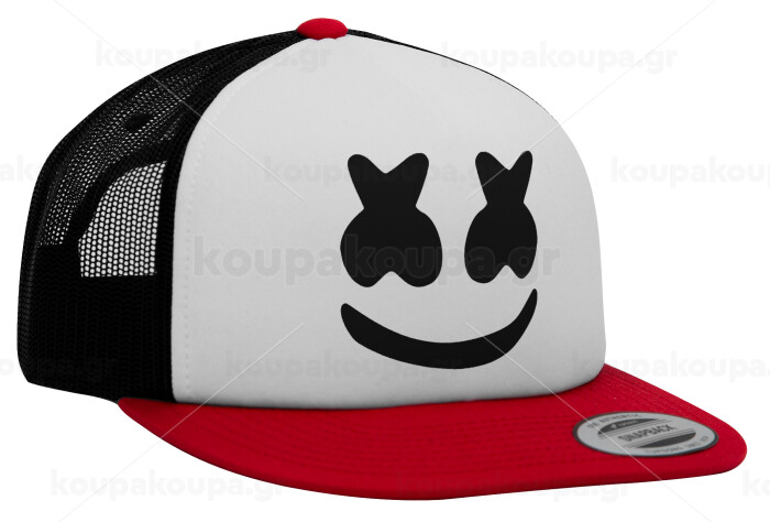 Marshmello, Adult Foam Flat Snapback with Mesh Red-White-Black (POLYESTER, ADULT, UNISEX, ONE SIZE)