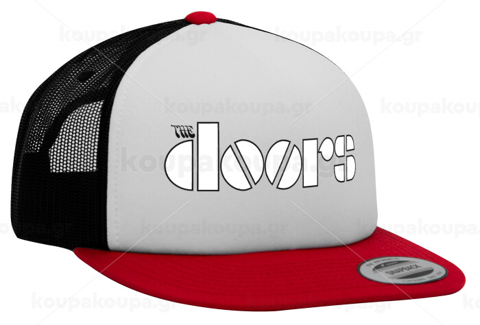 The Doors, Adult Foam Flat Snapback with Mesh Red-White-Black (POLYESTER, ADULT, UNISEX, ONE SIZE)