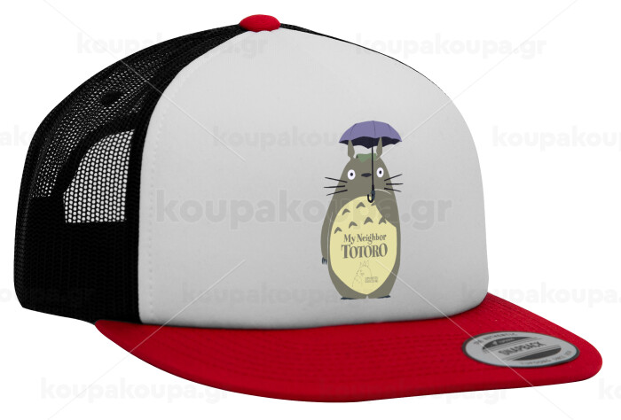 Totoro from My Neighbor Totoro, Adult Foam Flat Snapback with Mesh Red-White-Black (POLYESTER, ADULT, UNISEX, ONE SIZE)