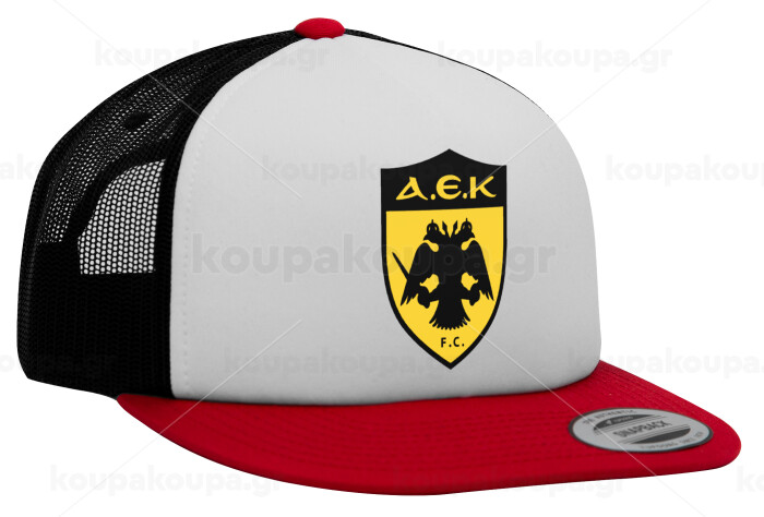 ΑΕΚ, Adult Foam Flat Snapback with Mesh Red-White-Black (POLYESTER, ADULT, UNISEX, ONE SIZE)