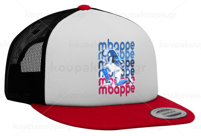 Kylian Mbappé, Adult Foam Flat Snapback with Mesh Red-White-Black (POLYESTER, ADULT, UNISEX, ONE SIZE)