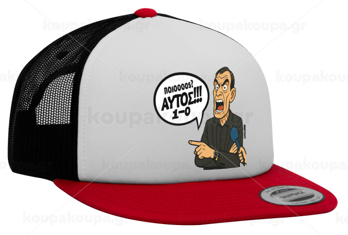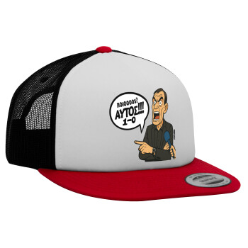 Μπαρτζό, Ποιος? Αυτός!!! 1-0, Adult Foam Flat Snapback with Mesh Red-White-Black (POLYESTER, ADULT, UNISEX, ONE SIZE)