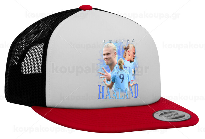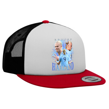 Erling Haaland, Adult Foam Flat Snapback with Mesh Red-White-Black (POLYESTER, ADULT, UNISEX, ONE SIZE)