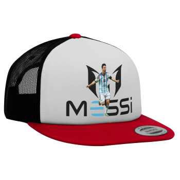 Lionel Messi, Adult Foam Flat Snapback with Mesh Red-White-Black (POLYESTER, ADULT, UNISEX, ONE SIZE)