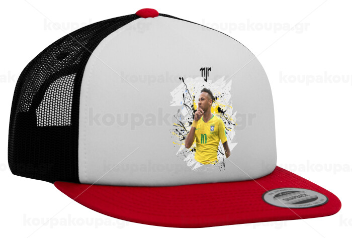 Neymar JR, Adult Foam Flat Snapback with Mesh Red-White-Black (POLYESTER, ADULT, UNISEX, ONE SIZE)