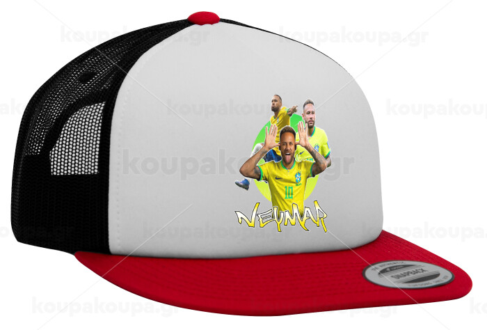 Neymar JR, Adult Foam Flat Snapback with Mesh Red-White-Black (POLYESTER, ADULT, UNISEX, ONE SIZE)