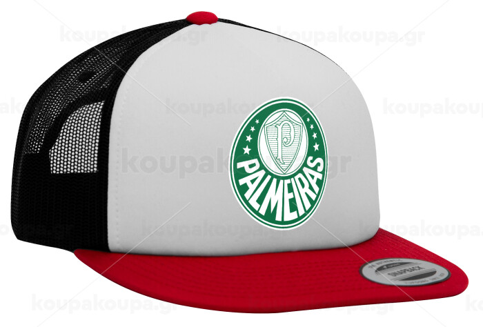 Palmeiras, Adult Foam Flat Snapback with Mesh Red-White-Black (POLYESTER, ADULT, UNISEX, ONE SIZE)