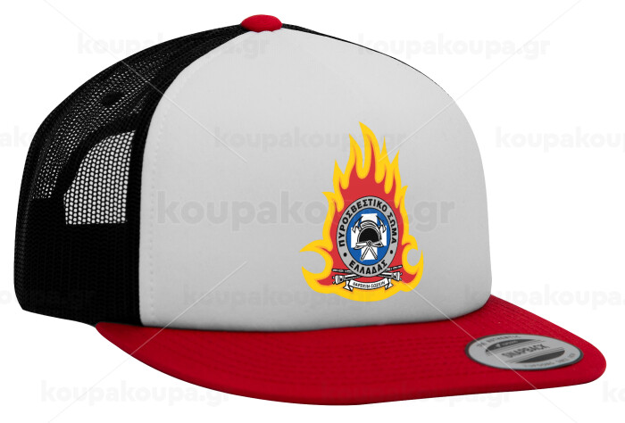 Πυροσβεστικό σώμα Ελλάδος σκούρο, Adult Foam Flat Snapback with Mesh Red-White-Black (POLYESTER, ADULT, UNISEX, ONE SIZE)