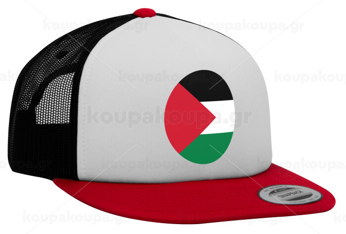 Palestine Flag, Adult Foam Flat Snapback with Mesh Red-White-Black (POLYESTER, ADULT, UNISEX, ONE SIZE)