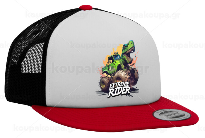Extreme rider Dyno, Adult Foam Flat Snapback with Mesh Red-White-Black (POLYESTER, ADULT, UNISEX, ONE SIZE)