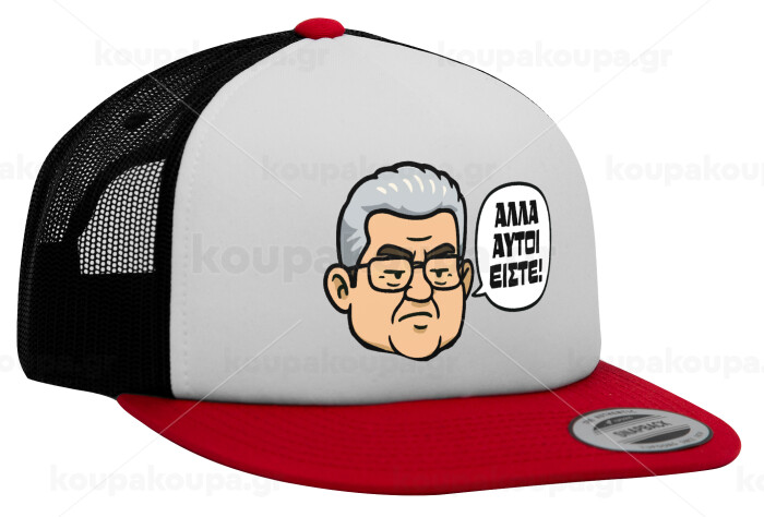 Κουτσούμπας, "Αλλά αυτοί είστε!", Adult Foam Flat Snapback with Mesh Red-White-Black (POLYESTER, ADULT, UNISEX, ONE SIZE)