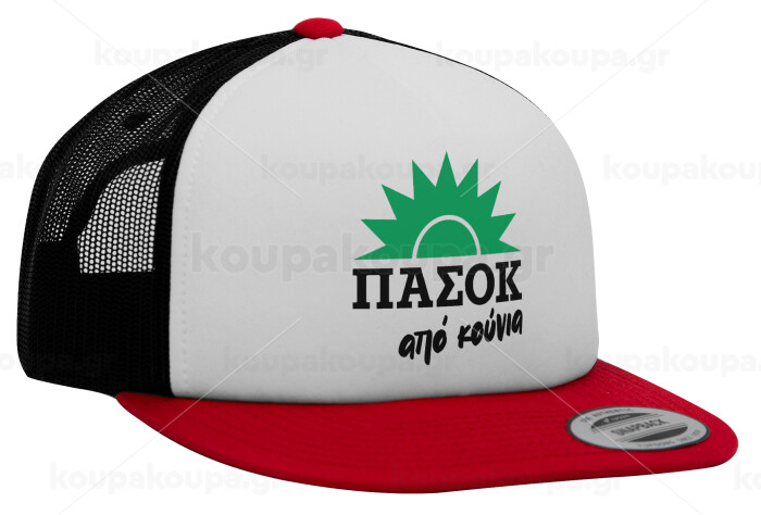 ΠΑΣΟΚ από κούνια, Adult Foam Flat Snapback with Mesh Red-White-Black (POLYESTER, ADULT, UNISEX, ONE SIZE)