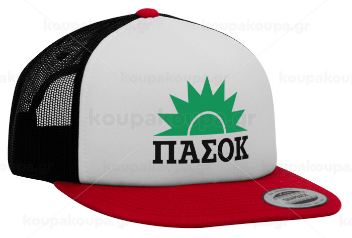 pasok, Adult Foam Flat Snapback with Mesh Red-White-Black (POLYESTER, ADULT, UNISEX, ONE SIZE)