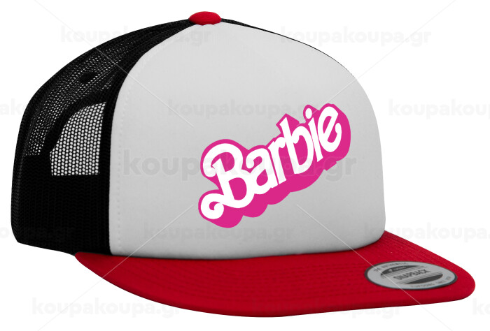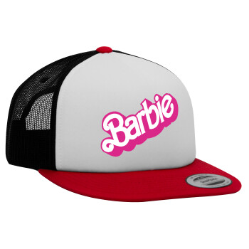 Barbie, Adult Foam Flat Snapback with Mesh Red-White-Black (POLYESTER, ADULT, UNISEX, ONE SIZE)