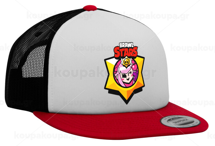 Brawl Stars Melodie, Adult Foam Flat Snapback with Mesh Red-White-Black (POLYESTER, ADULT, UNISEX, ONE SIZE)