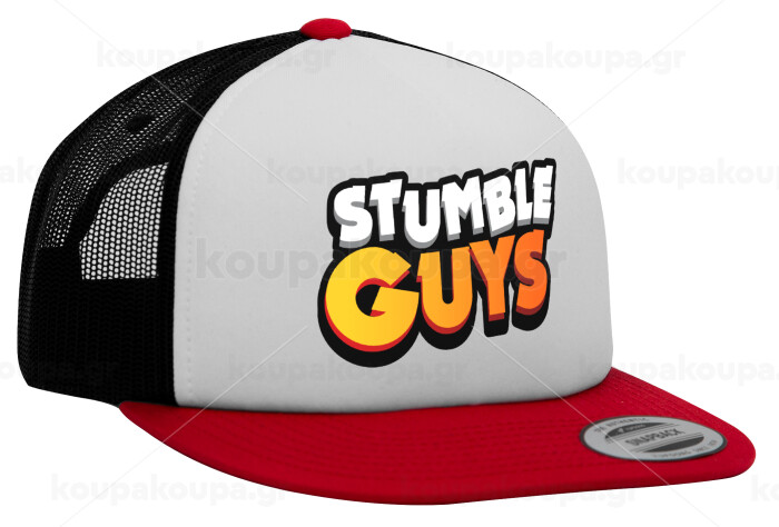 Stumble Guys, Adult Foam Flat Snapback with Mesh Red-White-Black (POLYESTER, ADULT, UNISEX, ONE SIZE)