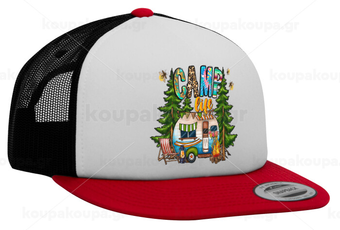 Camp Life, Adult Foam Flat Snapback with Mesh Red-White-Black (POLYESTER, ADULT, UNISEX, ONE SIZE)