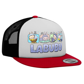 Labubu, Adult Foam Flat Snapback with Mesh Red-White-Black (POLYESTER, ADULT, UNISEX, ONE SIZE)