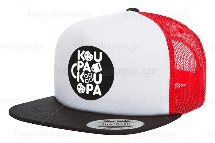 koupakoupa, Adult Foam Flat Snapback with Mesh Black-White-Red (POLYESTER, ADULT, UNISEX, ONE SIZE)