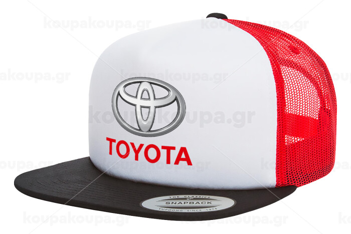 Toyota, Adult Foam Flat Snapback with Mesh Black-White-Red (POLYESTER, ADULT, UNISEX, ONE SIZE)