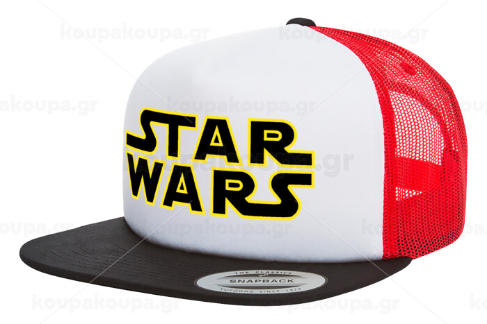 Star Wars, Adult Foam Flat Snapback with Mesh Black-White-Red (POLYESTER, ADULT, UNISEX, ONE SIZE)