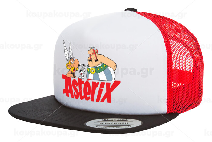 Asterix and Obelix, Adult Foam Flat Snapback with Mesh Black-White-Red (POLYESTER, ADULT, UNISEX, ONE SIZE)
