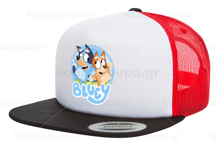 Μπλε, Adult Foam Flat Snapback with Mesh Black-White-Red (POLYESTER, ADULT, UNISEX, ONE SIZE)