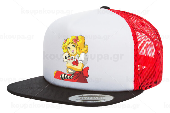Candy, Adult Foam Flat Snapback with Mesh Black-White-Red (POLYESTER, ADULT, UNISEX, ONE SIZE)