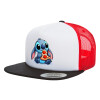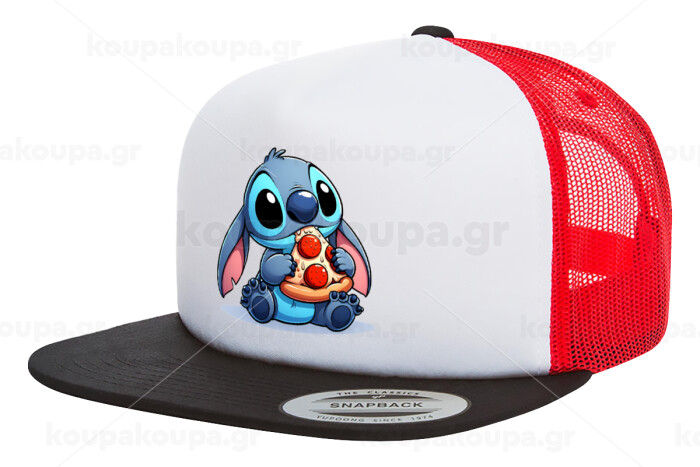 Stitch Pizza, Adult Foam Flat Snapback with Mesh Black-White-Red (POLYESTER, ADULT, UNISEX, ONE SIZE)