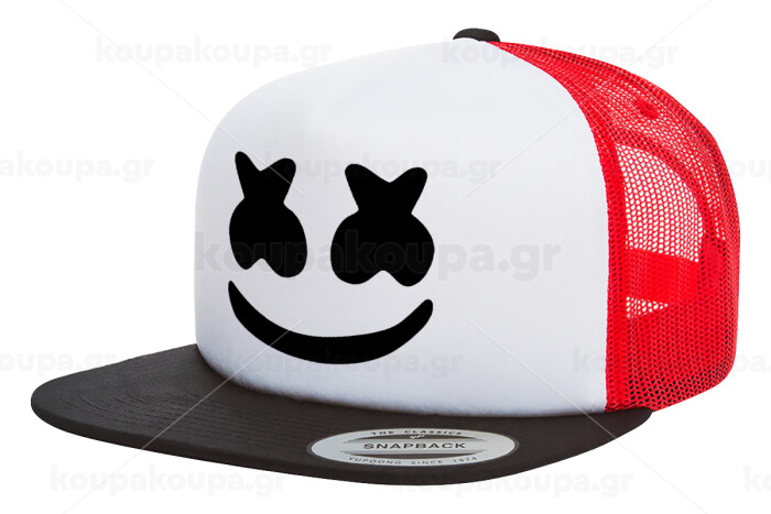 Marshmello, Adult Foam Flat Snapback with Mesh Black-White-Red (POLYESTER, ADULT, UNISEX, ONE SIZE)