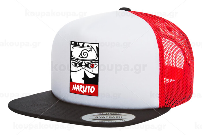 Naruto anime, Adult Foam Flat Snapback with Mesh Black-White-Red (POLYESTER, ADULT, UNISEX, ONE SIZE)