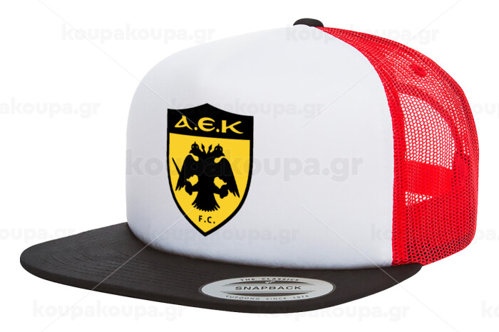 ΑΕΚ, Adult Foam Flat Snapback with Mesh Black-White-Red (POLYESTER, ADULT, UNISEX, ONE SIZE)