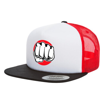 Punch, Adult Foam Flat Snapback with Mesh Black-White-Red (POLYESTER, ADULT, UNISEX, ONE SIZE)