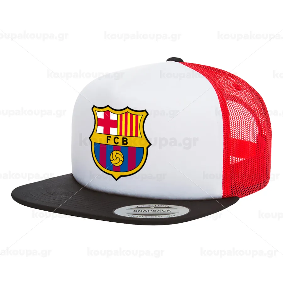 Barcelona FC, Adult Foam Flat Snapback with Mesh Black-White-Red (POLYESTER, ADULT, UNISEX, ONE SIZE)
