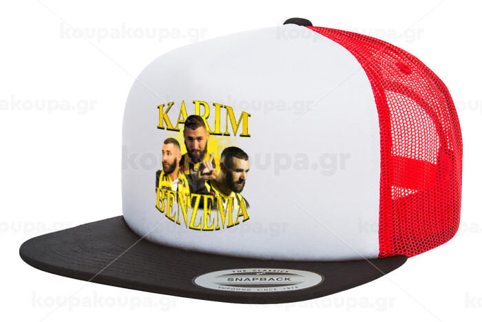Karim Benzema, Adult Foam Flat Snapback with Mesh Black-White-Red (POLYESTER, ADULT, UNISEX, ONE SIZE)