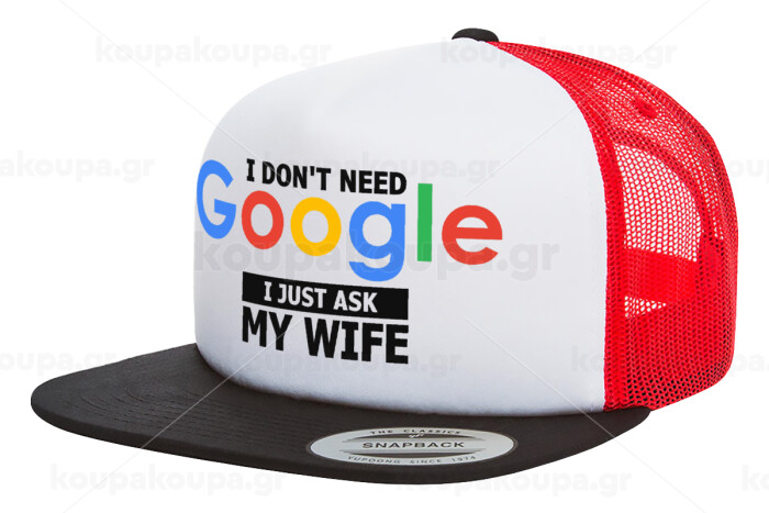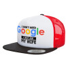 I don't need Google, just ask my WIFE, Adult Foam Flat Snapback with Mesh Black-White-Red (POLYESTER, ADULT, UNISEX, ONE SIZE)