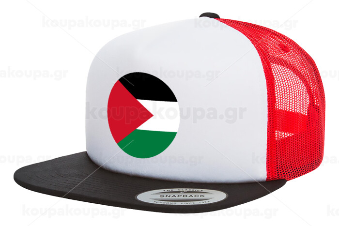 Palestine Flag, Adult Foam Flat Snapback with Mesh Black-White-Red (POLYESTER, ADULT, UNISEX, ONE SIZE)