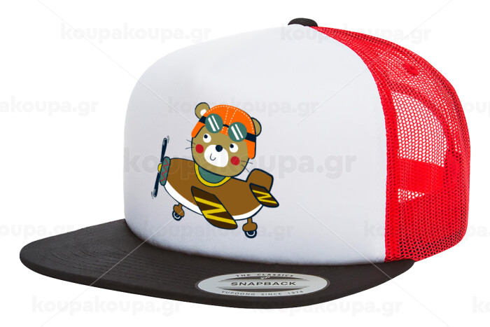 Kids Plane, Adult Foam Flat Snapback with Mesh Black-White-Red (POLYESTER, ADULT, UNISEX, ONE SIZE)