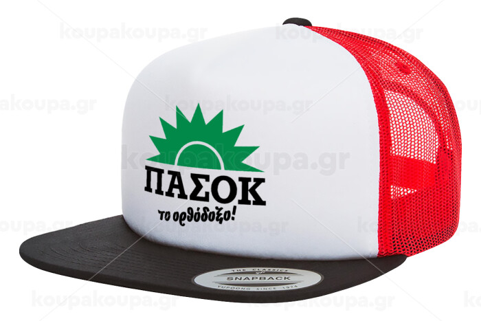 PASOK the orthodoxo, Adult Foam Flat Snapback with Mesh Black-White-Red (POLYESTER, ADULT, UNISEX, ONE SIZE)