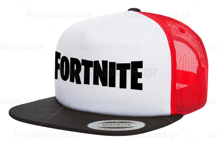Fortnite landscape, Adult Foam Flat Snapback with Mesh Black-White-Red (POLYESTER, ADULT, UNISEX, ONE SIZE)