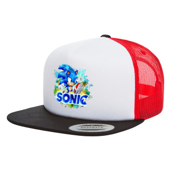Sonic, Adult Foam Flat Snapback with Mesh Black-White-Red (POLYESTER, ADULT, UNISEX, ONE SIZE)