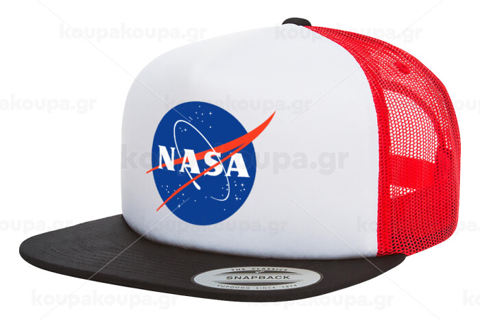 Nasa, Adult Foam Flat Snapback with Mesh Black-White-Red (POLYESTER, ADULT, UNISEX, ONE SIZE)